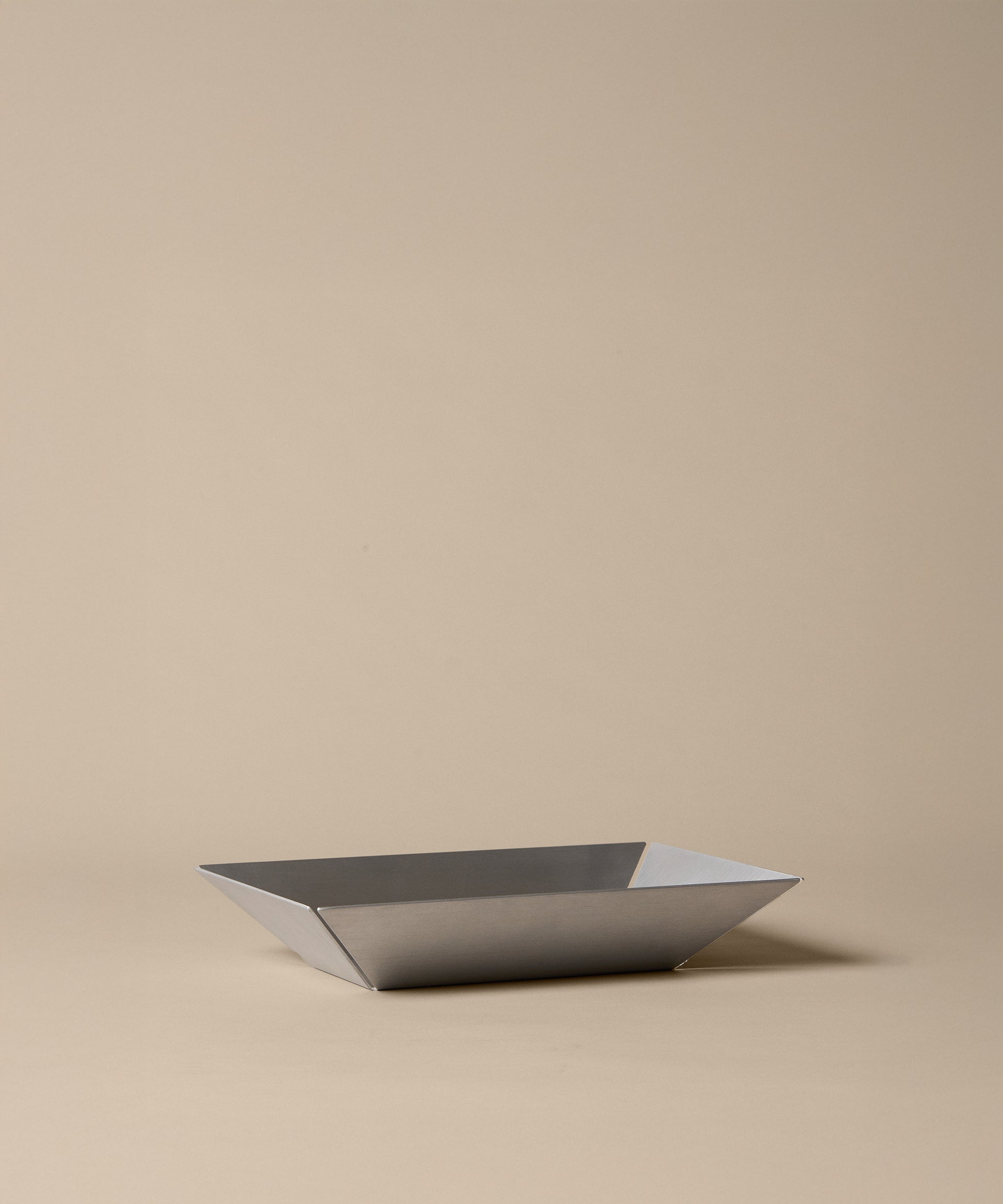 The Press High Tray is meticulously crafted from flat brushed aluminium sheets and pressed into a three-dimensional form that creates a structured volume.