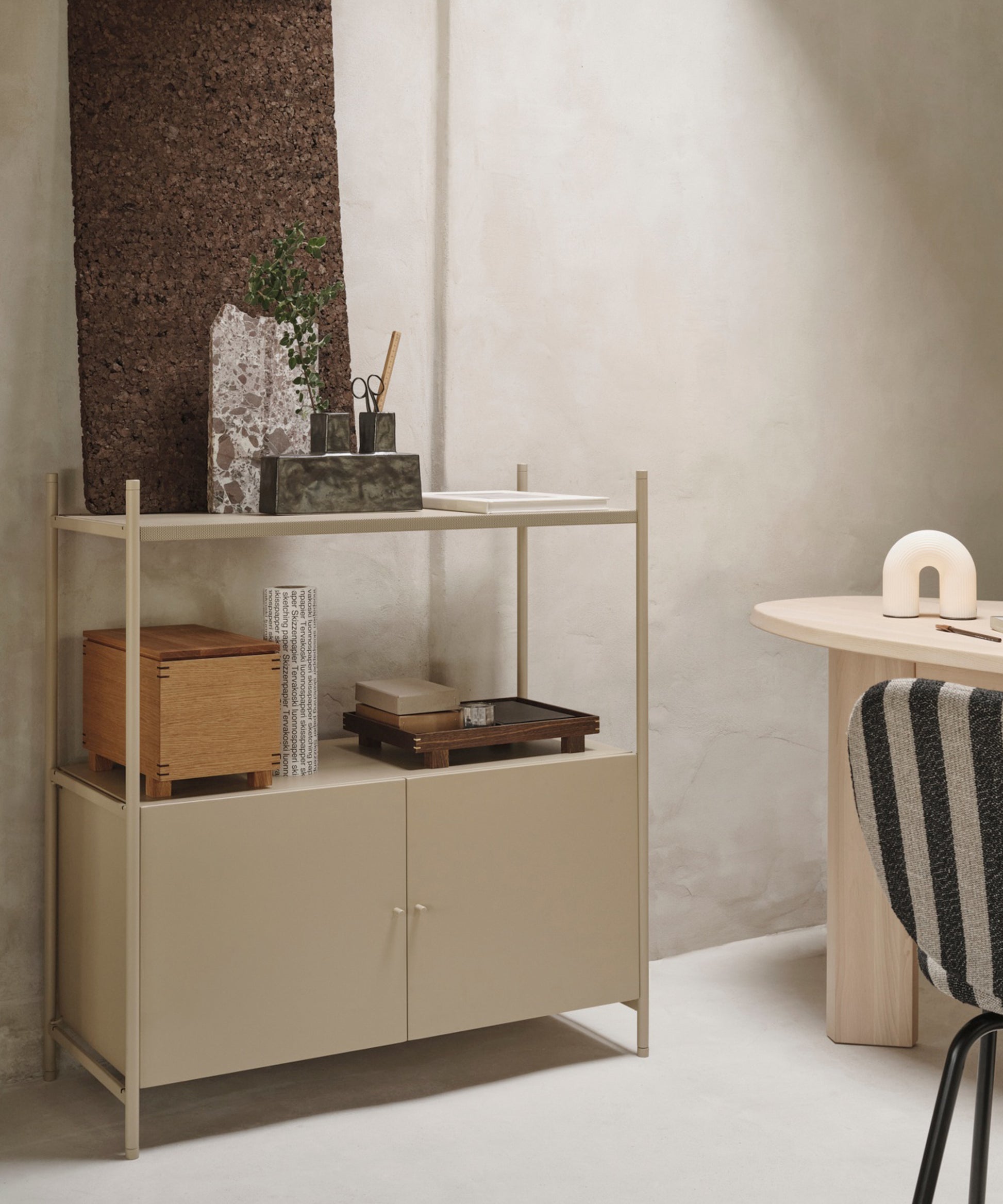 Combinable with other pieces from the shelving system, the Punctual Cabinet features a sleek, industrial-inspired design. Merging aesthetic appeal and efficiency, the cabinet provides ample space and presents a neat storage solution for your home or workspace.