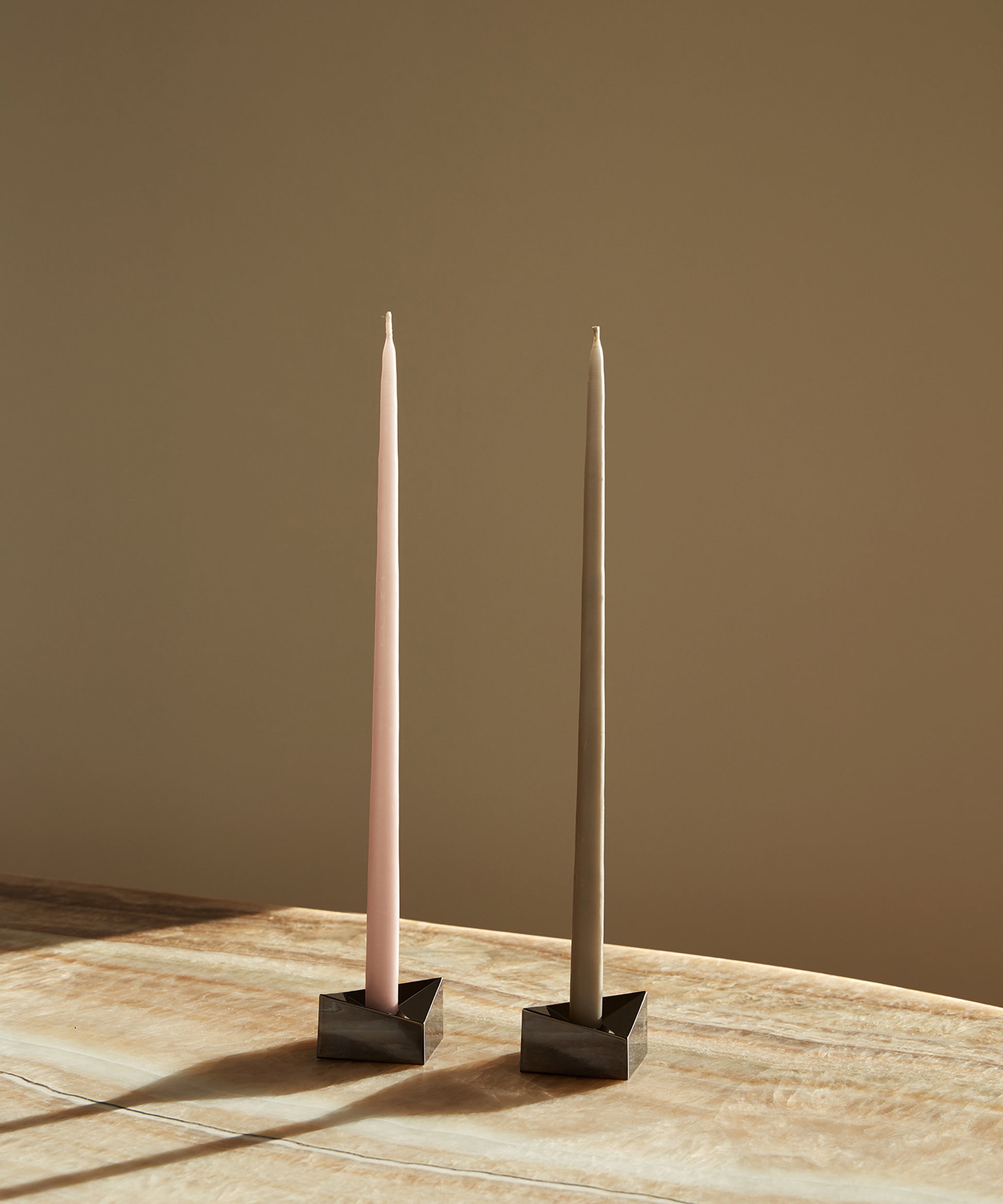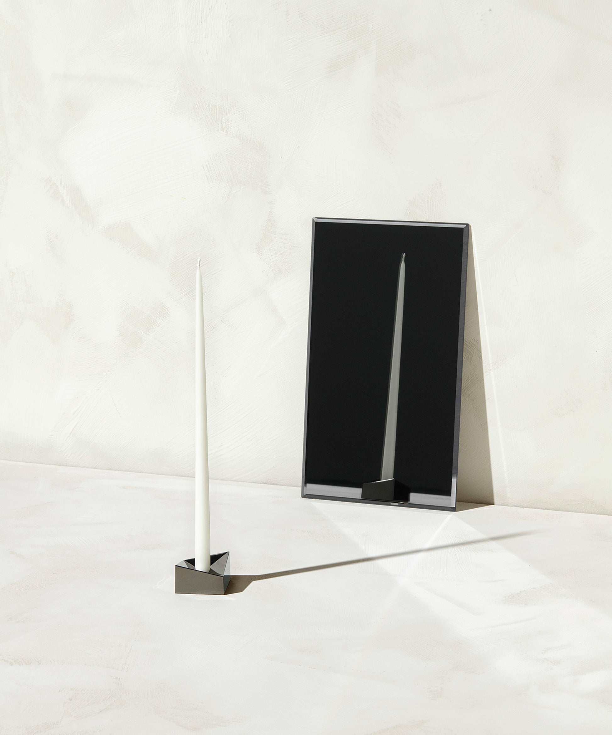 With its simplicity of design combined with geometrical shapes, theReflect candle holder plays with reflections and light adding a visual intrigue intothe spaces surrounding it. The candle holder is available in a small and large editionin three different colors, making it possible to create beautiful color combinationsincluding both traditional candles and STOFF Nagel taper candles.