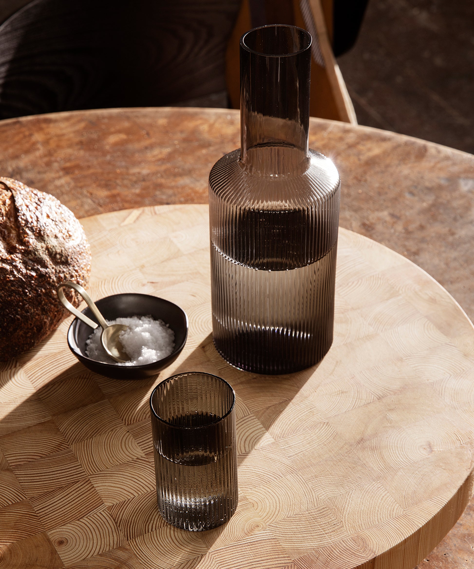 Mouth-blown into the mold, this practical and beautiful carafe features a rippled design for a contemporary look.