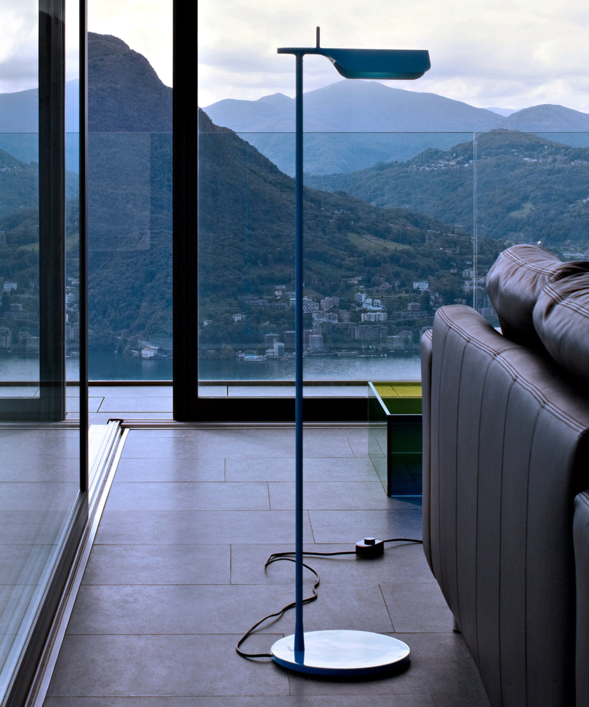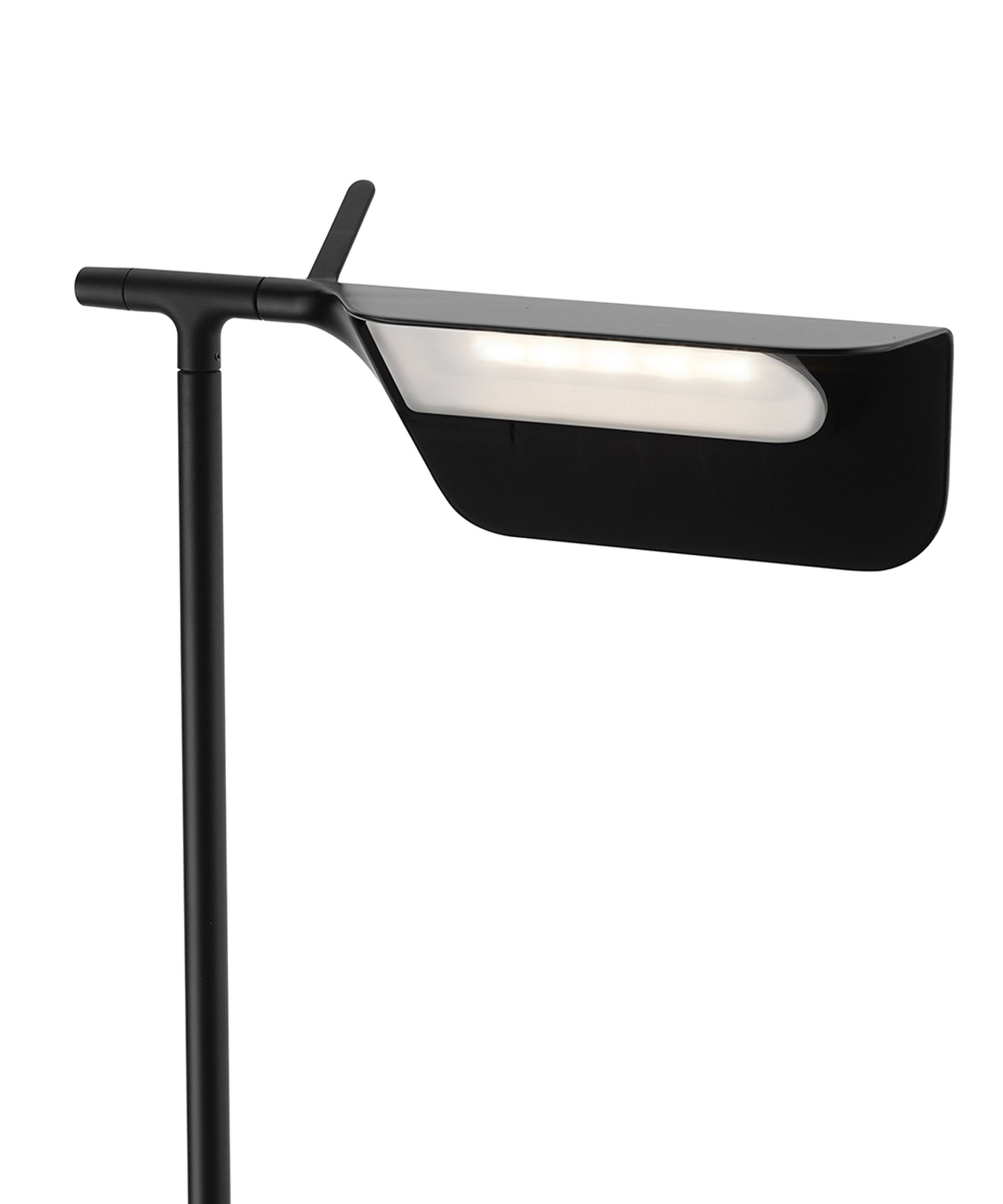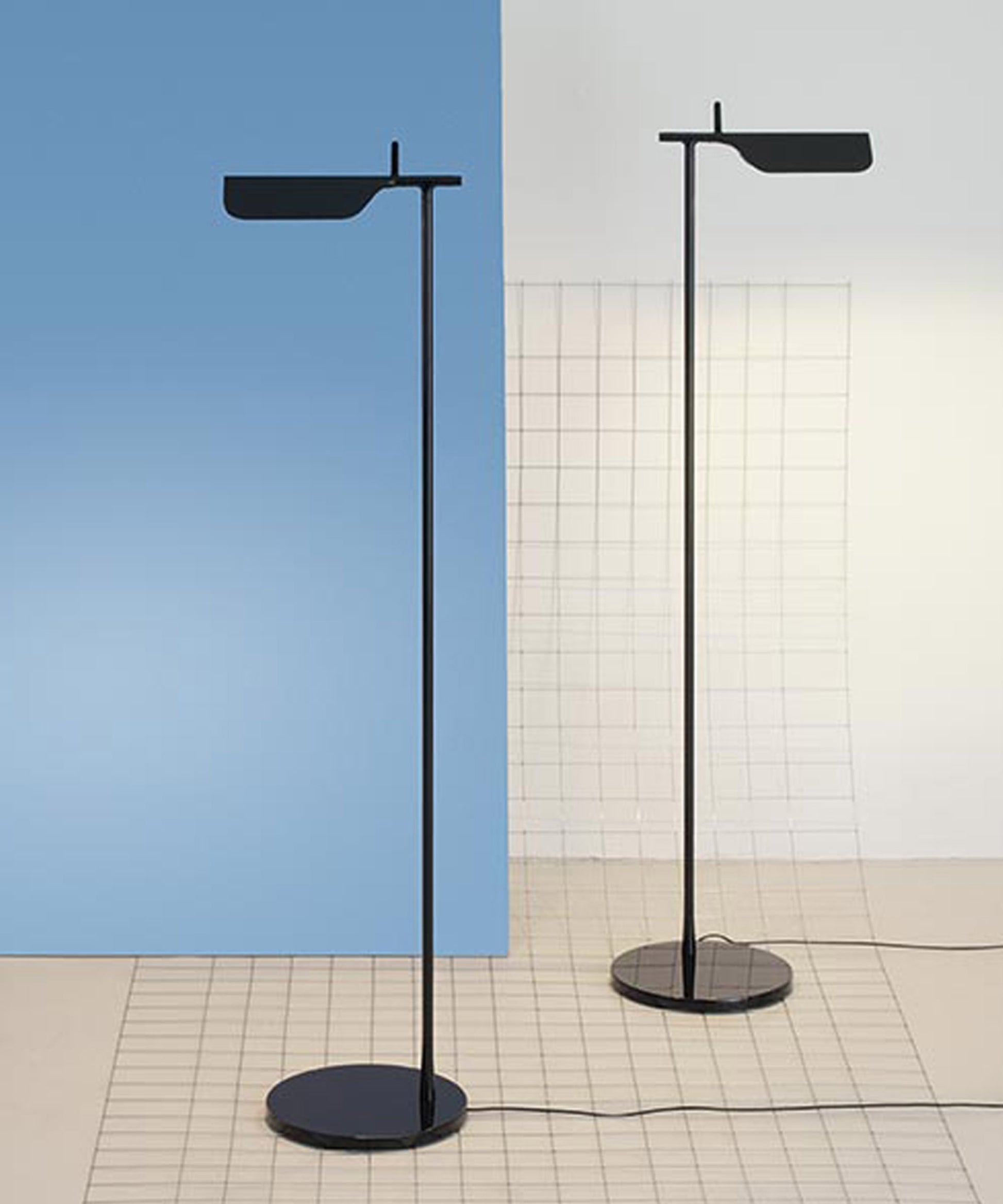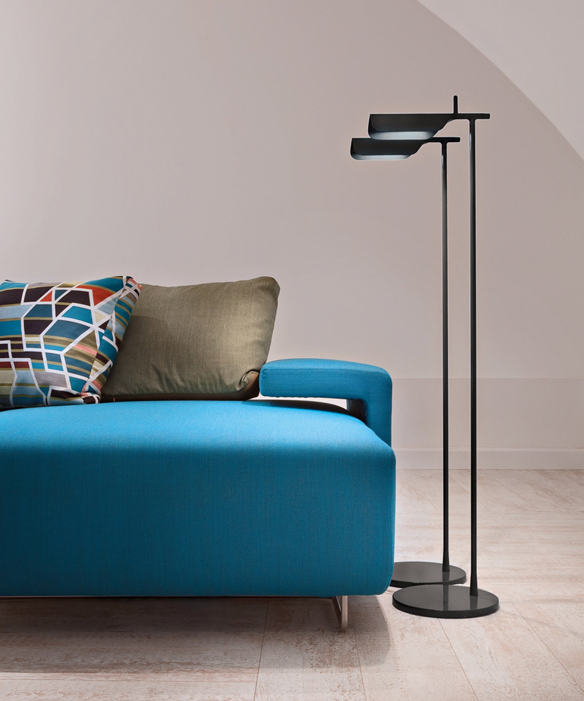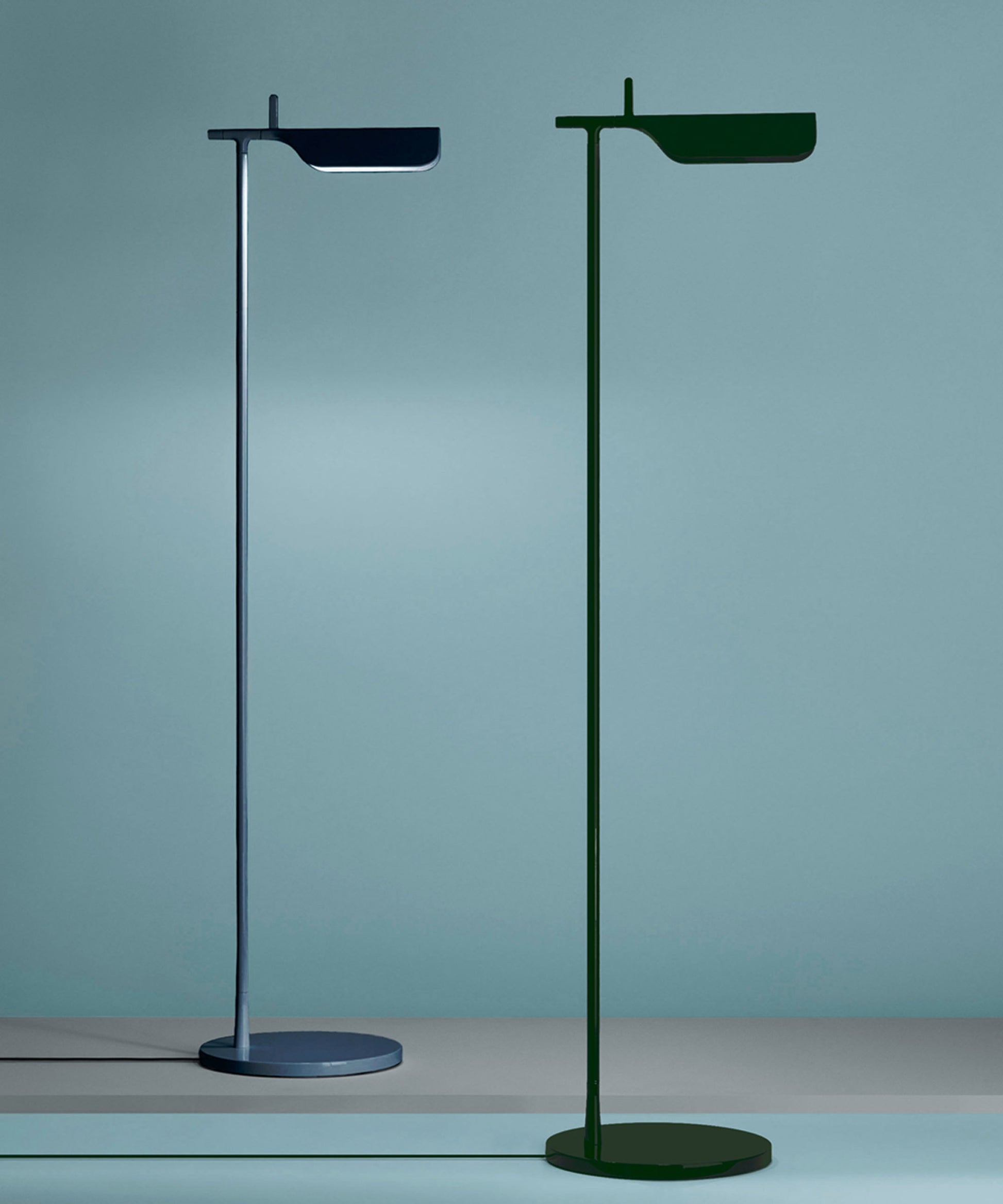 This new edition of Tab floor lamp has an adjustable head with a 90-degree rotation capability emitting non-dimmable, direct light. Available in 2 new finishes matte blue and matte dark green as well as the original black and white. Brought to life by the design duo of Edward Barber and Jay Osgerby originally designed in 2011, the Tab floor lamp is a tribute to the spirit of innovation. The lamp body is painted with pressofused aluminum. Its multi-led diffuser is specially designed PMMA (Polymethyl methacrylate), created to avoid a multi-shadow effect and dazzle. The inspiration behind the design: Designers Edward Barber and Jay Ogersby keep one goal in mind when they begin a creation: Challenge everything. When we are commissioned to design a product, we seek to re-evaluate the archetype, to challenge precedents. We always look at different ways in which products can be manufactured, not necessarily by using new materials or radical rethinking, but maybe by using existing techniques in a more original or intelligent way.