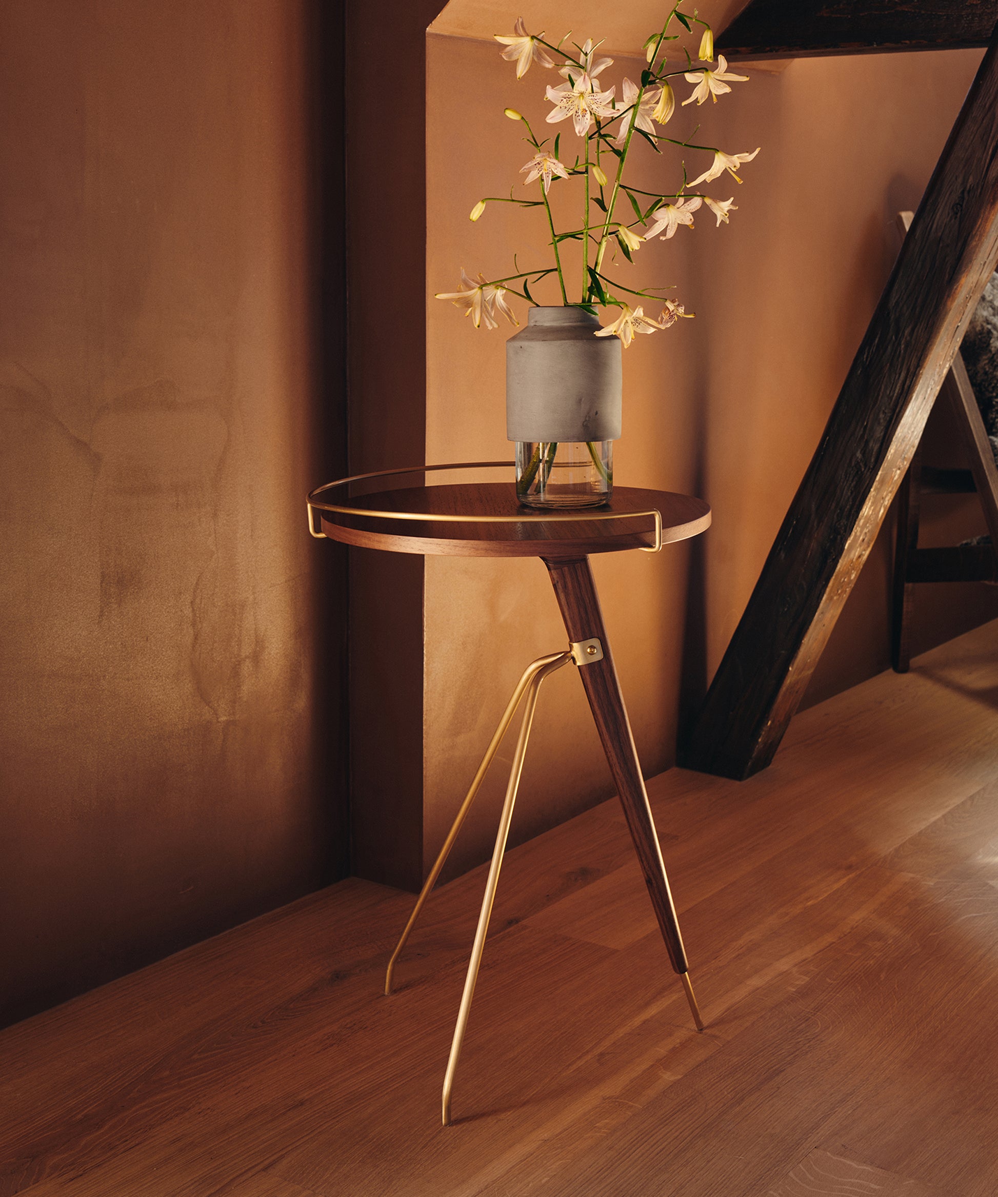 As relevant today as it was when first designed by Arthur Umanoff in the 1950s, the reissued Umanoff Side Table balances walnut and brass on its rounded top and tripod inspired frame to create a table that challenges convention.