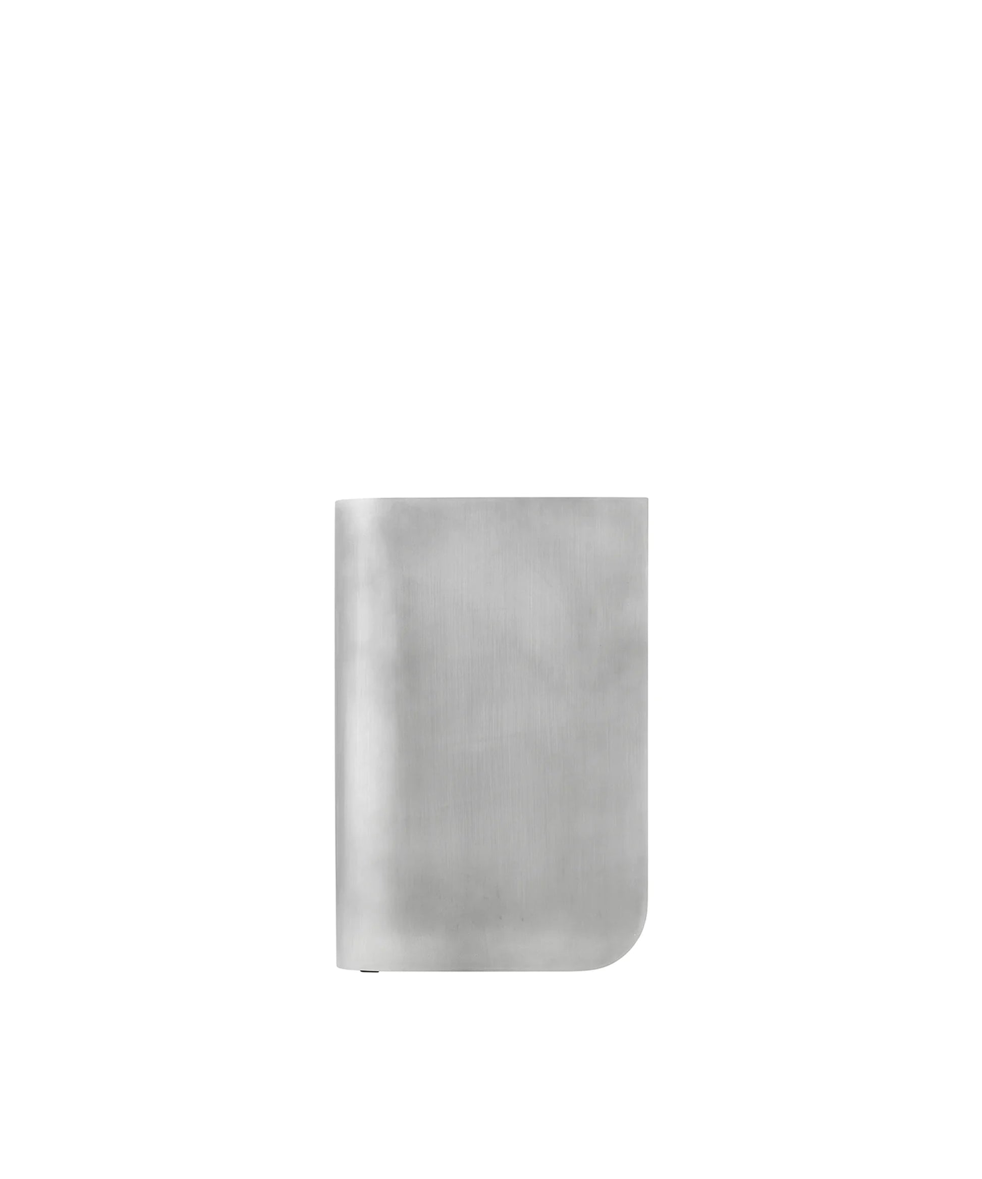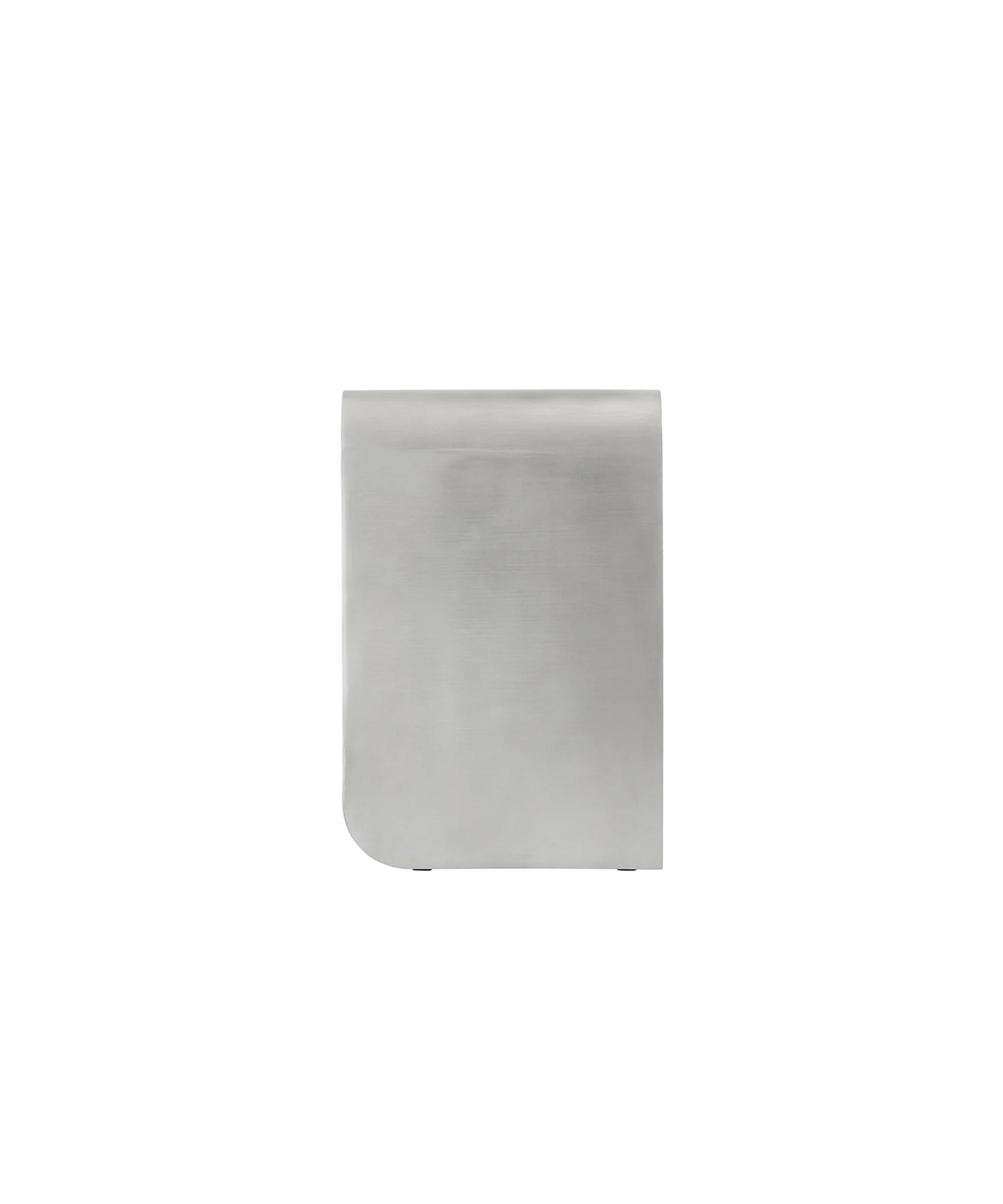 Crafted from aluminium, it boasts a sleek and modern appearance with curved lines offsetting straight lines to create a balanced look. The polishing process on the metal enhances its visual appeal, giving the table a unique sheen that adds character. The lacquer-protected surface ensures low maintenance, making it easy to clean and maintain the side table's sleek appearance with minimal effort whether used indoors or outdoors.