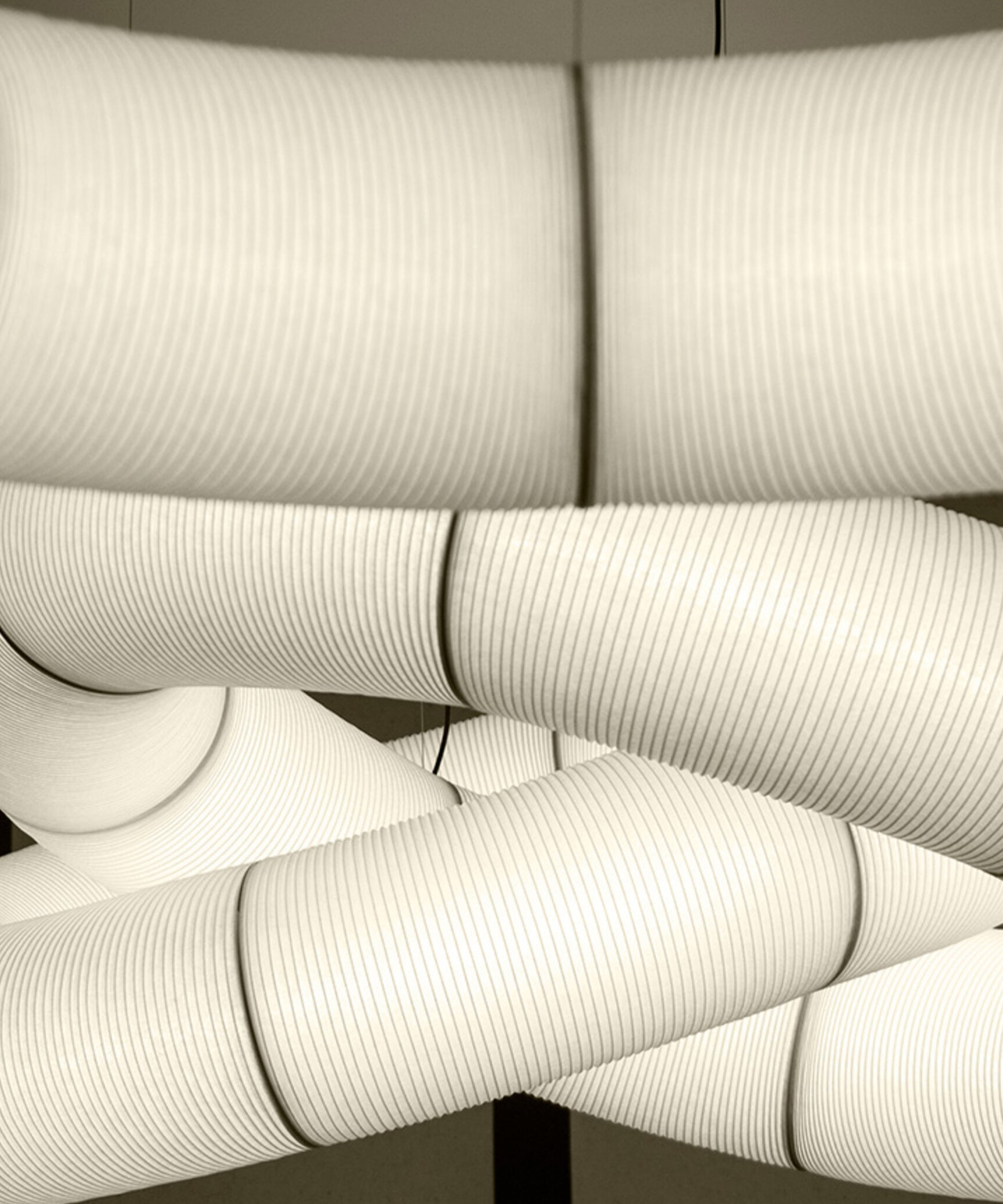 The paper, used by Isamu Noguchi to create the famous Akari lamps, is resilient and ductile, even malleable. It has a warm texture that filters in a soft, gentle light. Santa & Cole relies on the hands of experts in the Japanese city of Mito for manufacturing the paper, one of the cities specialized in its production. Tekiò, the Japanese word for adaptation, merges ancient artisan techniques with LED technology that enables control of intensity and color temperature. Linear or circular shapes can be created by combining various modules. The fixture comes with the option of either a circular or rectangular canopy, available in white.